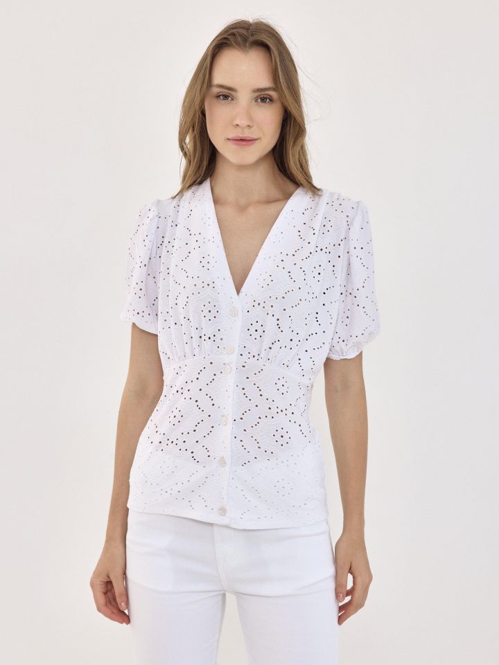 חולצה V פתח ריקמה