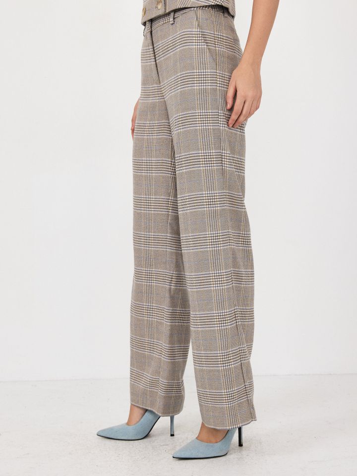 מכנסיים משבצות, קלאסיים וטרנדיים לעונה, בגזרה מתרחבת ומדוייקת. יכולים להתאים כסט עם וסט 250368 או ג’קט 250768